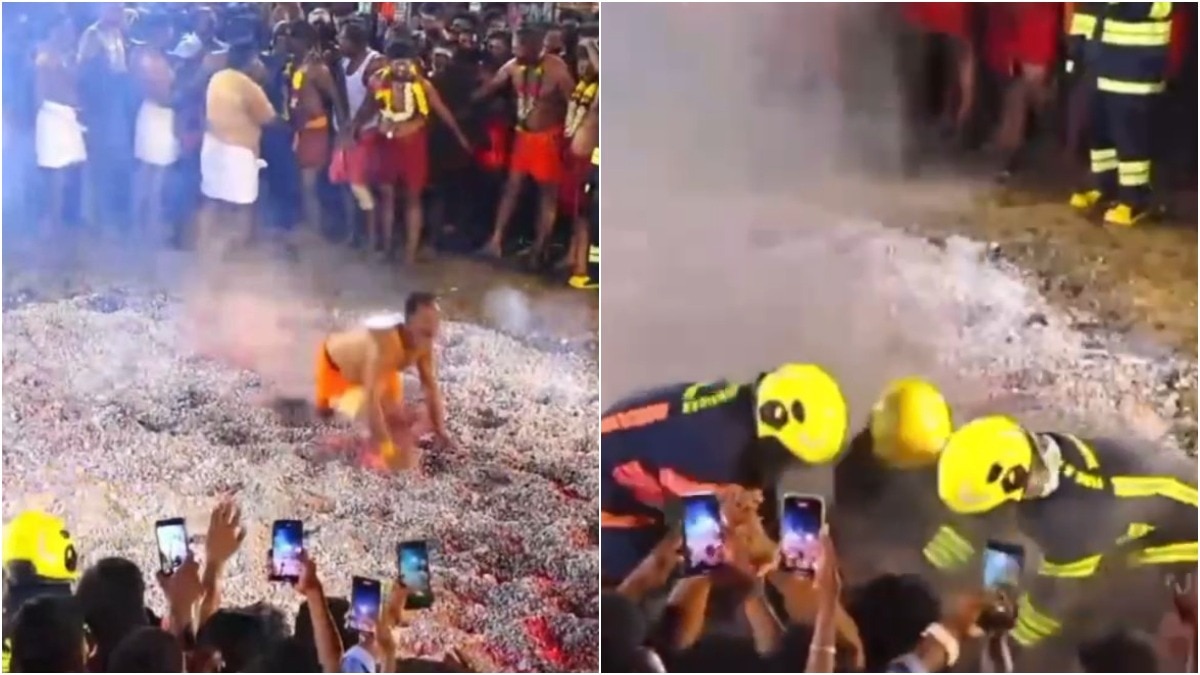 तमिलनाडु के रामनाथपुरम स्थित कुयावनकुडी में मंदिर उत्सव के दौरान अंगारे पर दौड़ रहा एक शख्स अचानक फिसलकर गिर पड़ा.…